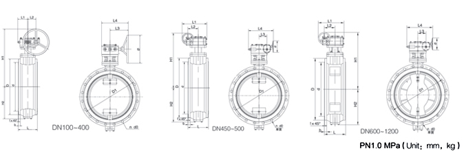 DN | Gear Operator | L | D | D1 | d | n | d0 | b | f | H1 | H2 | L1 | L2 | L3 | L4 | Φ | Weight |